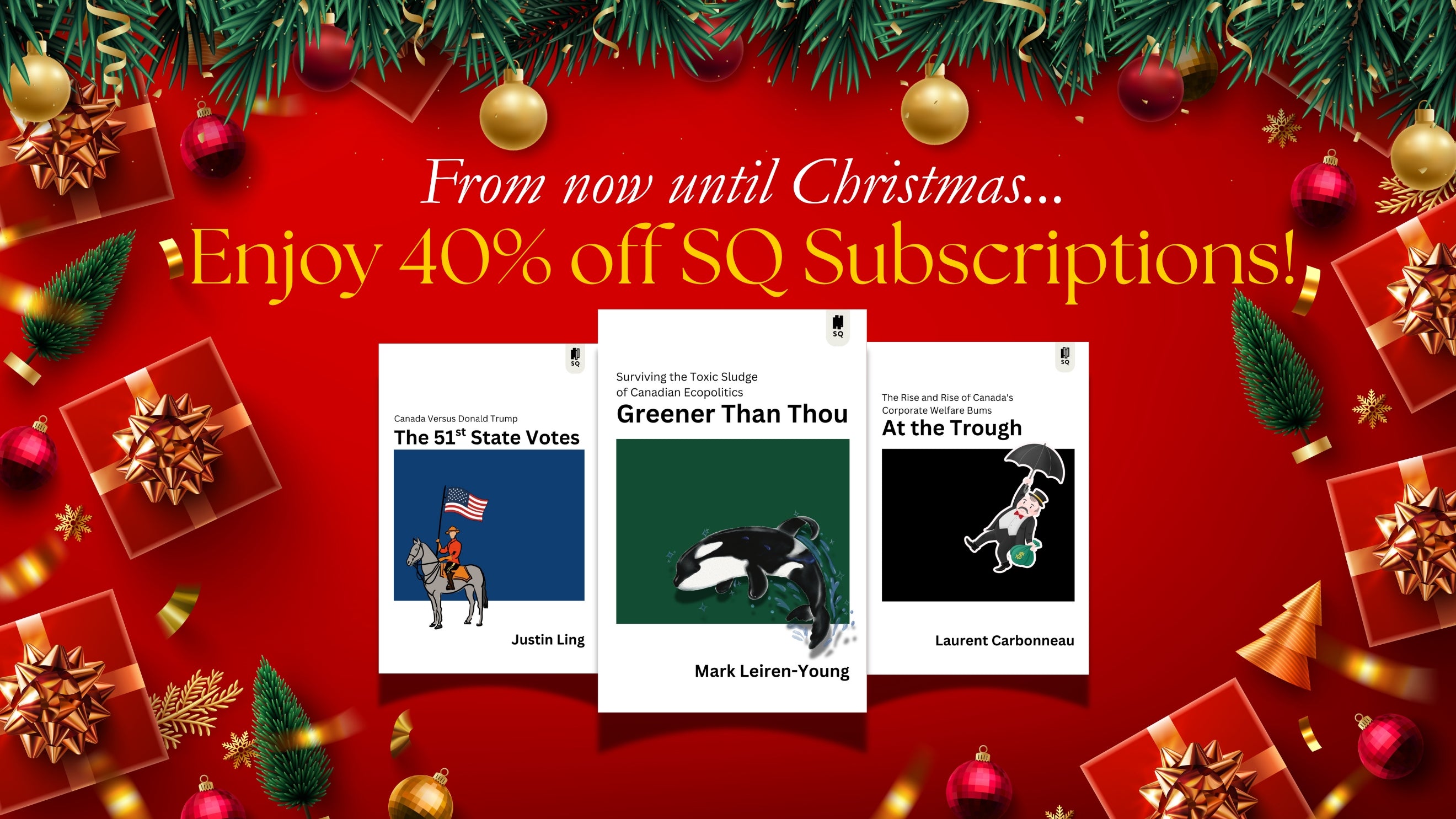 Subscribe to the Sutherland Quarterly Print subscription now, and receive a copy of Greener Than Thou by Mark Leiren-Young.